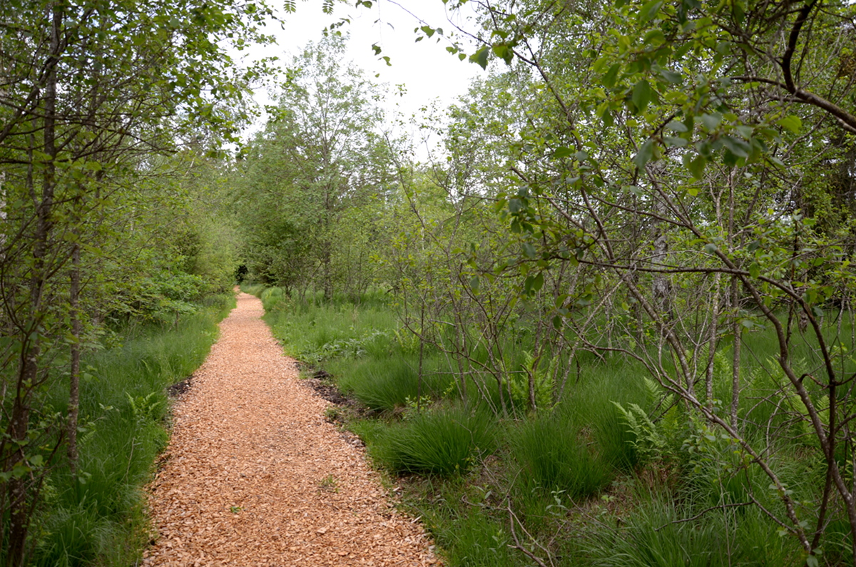 Mit Hackschitzel ausgelegter Weg durchs Ziegelbacher Ried