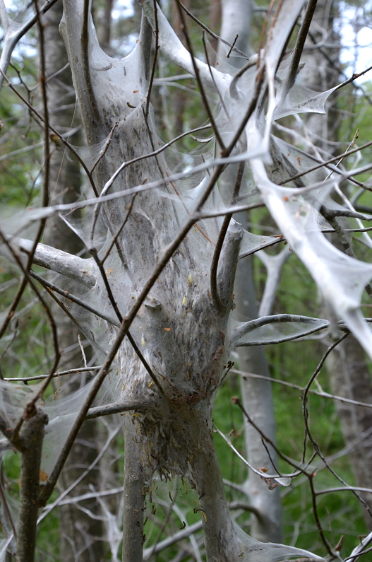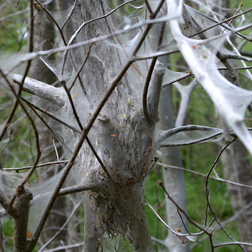 Gespinstmotten hüllen ganze Bäume in ein Gespinst ein