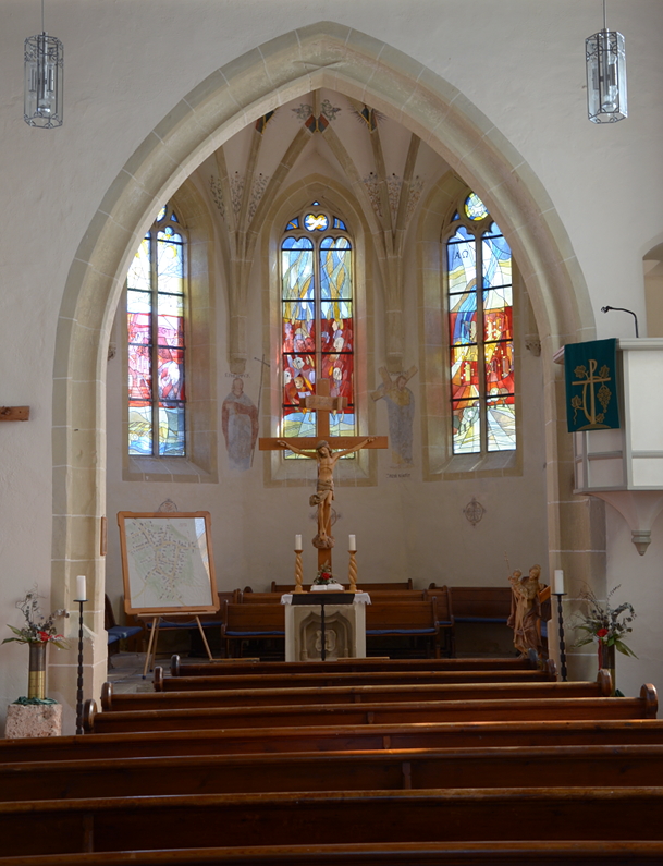 Innenansicht der Stephanuskirche des ehemaligen Dorfes Gruorn.