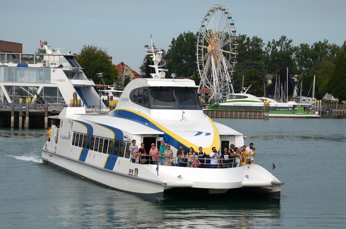 Der Katamaran "Ferdinand" verlässt Friedrichshafen nach Konstanz