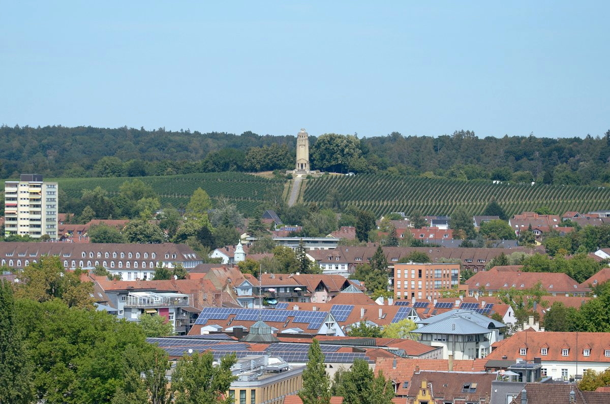 Erzabtei Beuron vom Aussichtspunkt am Soldatenfriedhof aus gesehen.