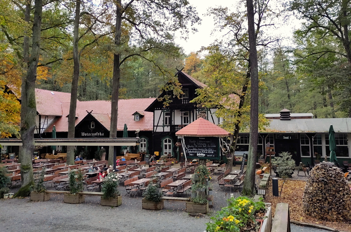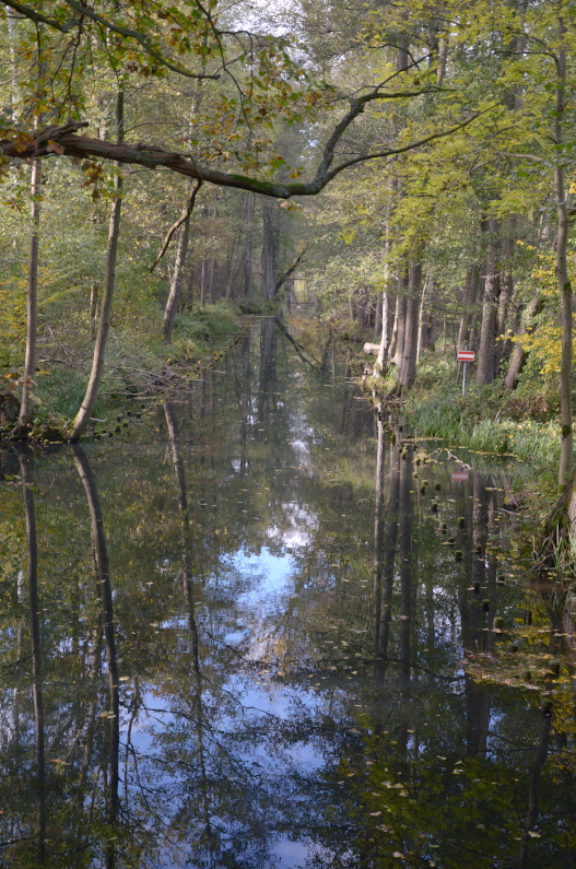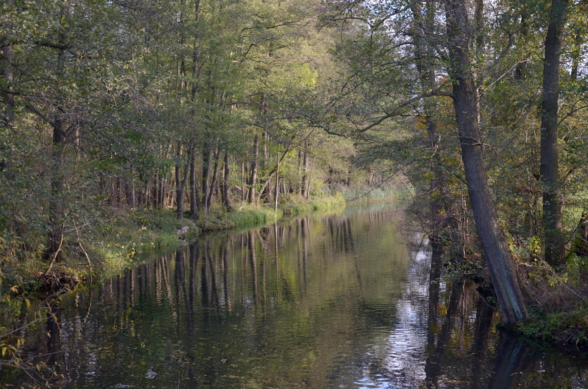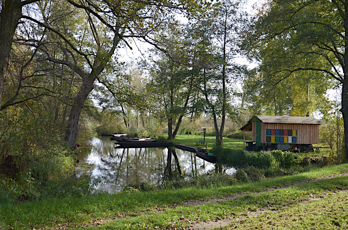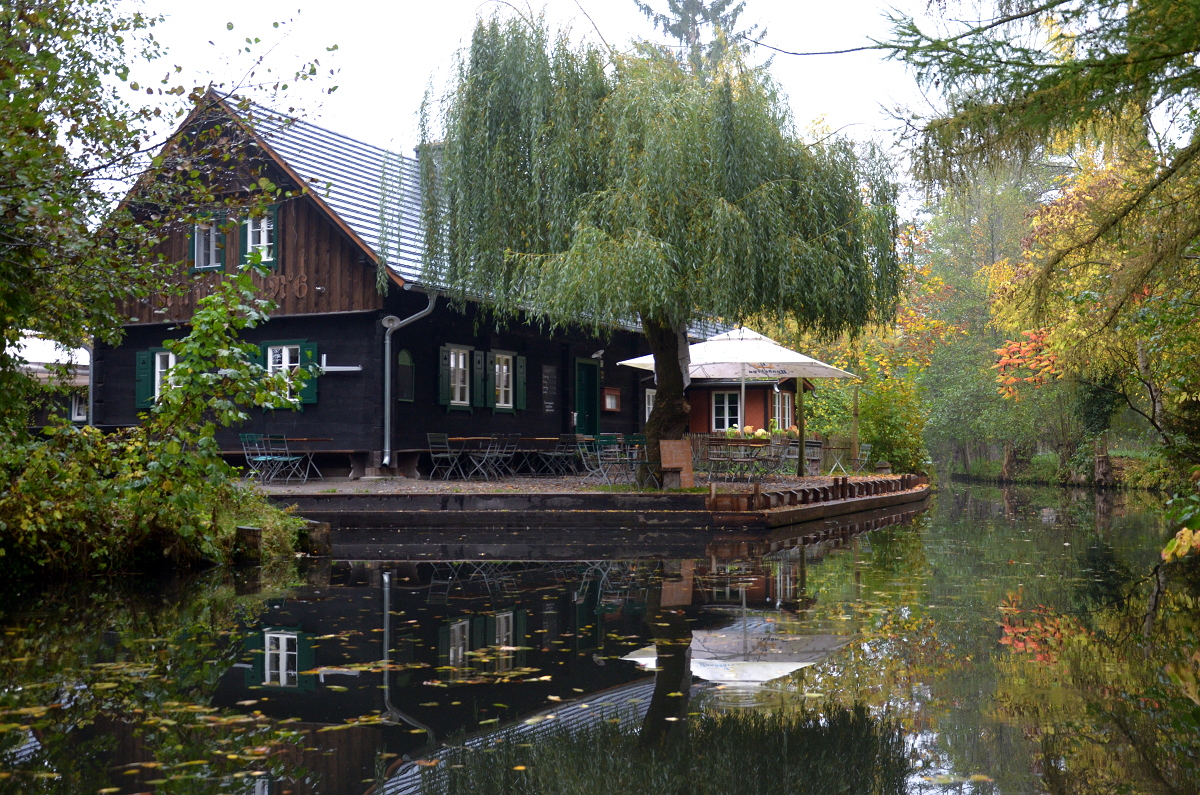 Kanus auf dem Wehrkanal beim Gasthaus Wotschofska
