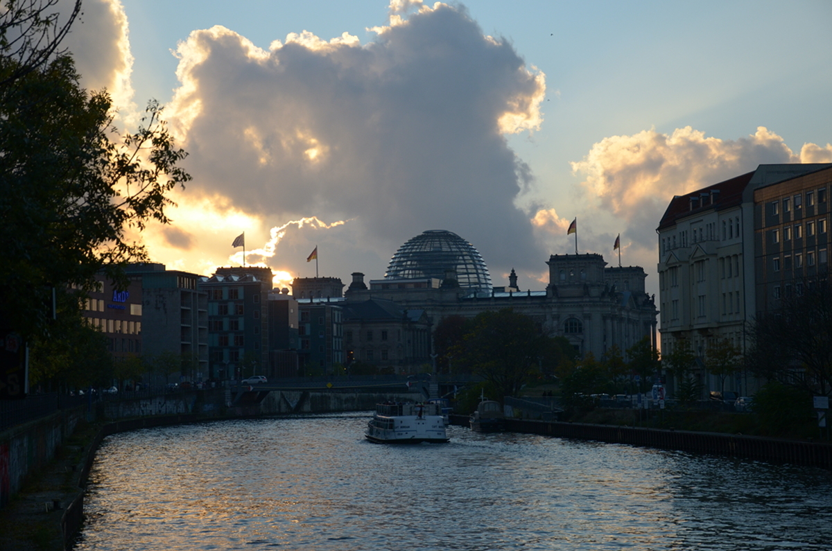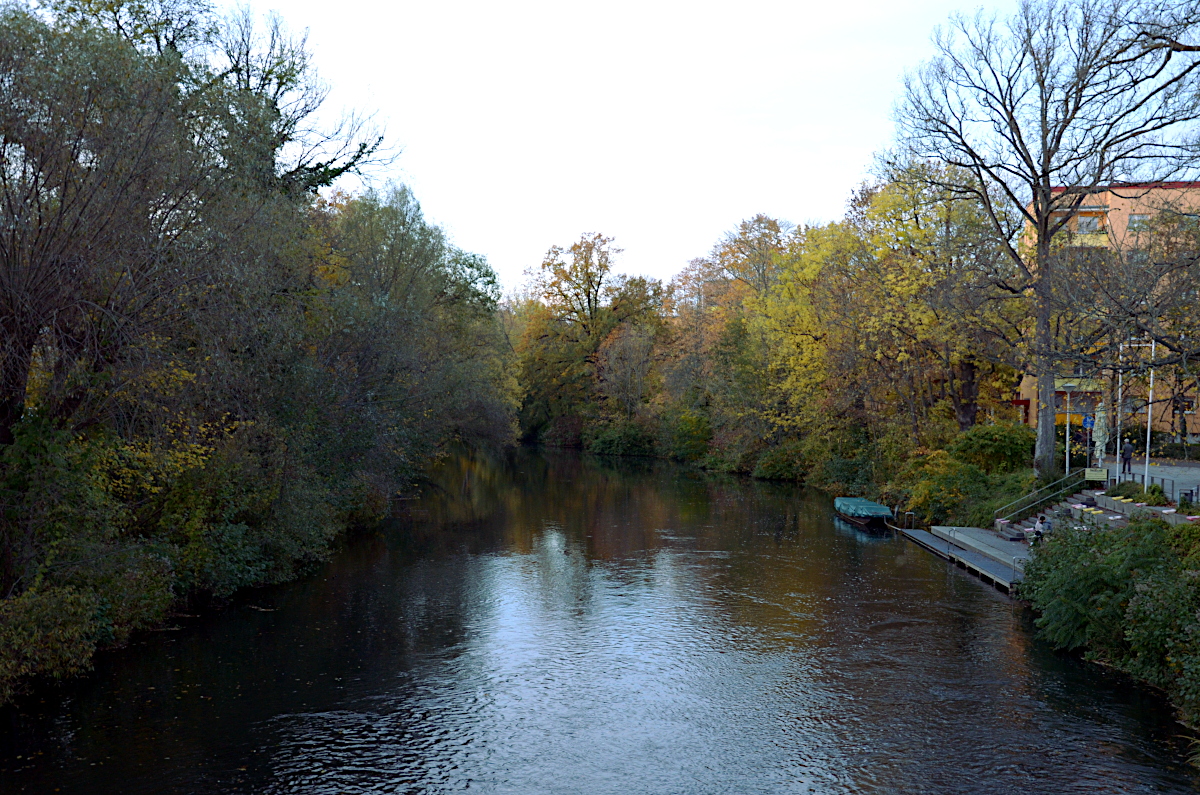 Blick entlang der Spree zum Bahnhof Friedrichstrasse