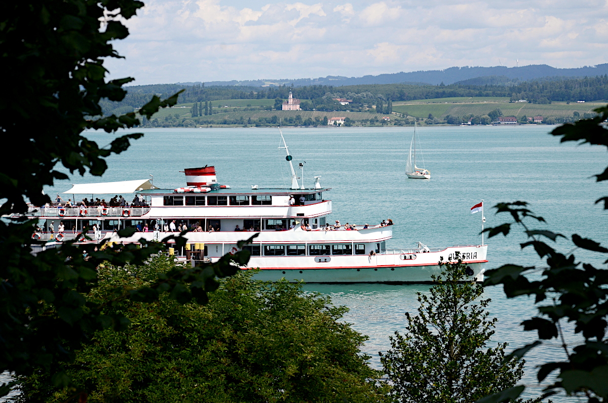Blick über den Überlinger See zur Wallfahrtskirche Birnau.