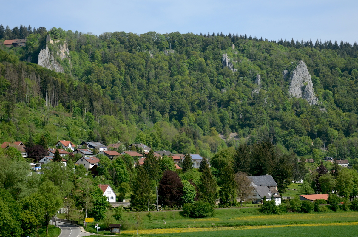 Hausen im Tal mit Ruine Hausen, Wartturm und Stuhlfels