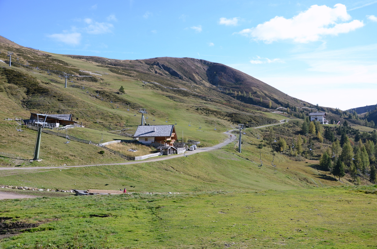 Kirchsteiger Alm (mitte) und Meraner Hütte (rechts)