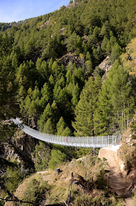 Auf dem Vinschger Höhenweg: Hängebrücke über den Fallerbach