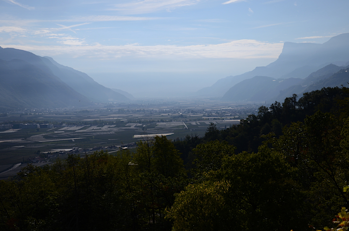 Blick vom Marlinger Waalweg Richtung Süden ins Etschtal